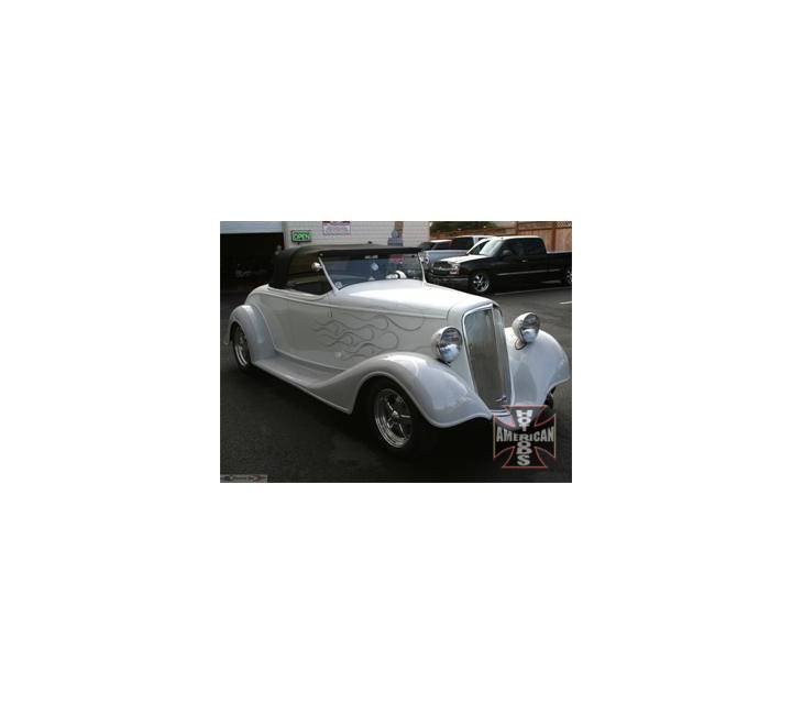 You are checking out a beautiful 1934 Chevrolet Roadster. This classic has just been completed and is amazing. Everything was gone through and restored to produce a one of a kind custom. The car has great bodylines and looks beautiful. The smoothed and filled Outlaw body is coated in White paint with light Grey fenders all topped with great looking ghost flames. This car is fully custom from the custom polished aluminum nerf bumpers to the custom turn signals. The car is fully shaved and has a great stance. It has the original style exterior door hinges that give the car the look of a steel car. The Rootlieb hood (with Dan Fink hood latch) is the best reproduction hood money can buy. Everywhere you look is a never before seen customization. The engine was completely rebuilt and blue printed professionally. Only the highest quality parts were used in its construction. The car has an amazing sound with a custom exhaust that should be in a museum. The Turbo 350 transmission shifts smoothly with zero problems. The following table gives a breakdown of this balanced and blueprinted 350 V8: ENGINE 450 Horsepower Electric Fan Aluminum Radiator Polished Stainless Steel Overflow Tube Aluminum Custom Heads Polished Aluminum Water Pump Twin Holley 600 CFM Carburetors Polished B&M Supercharger Polished Intake Manifold Polished Billet Pulleys Polished B&M Valve Covers Custom Polished Aluminum Air Cleaner Polished Sanden Air Conditioning Compressor Polished GM Alternator Custom Polished Brackets MSD Distributor With Box Polished Aluminum Air Conditioning Ceramic Coated Headers Hi-torque Starter The custom interior is finished out in grey and looks great. The custom flush white dash is painted just as smoothly as the exterior. The following is a breakdown of the major interior components: Interior Custom Flush Dash Billet Air Conditioning Outlets Auto-meter Gauges Tilt Steering Custom Drop Steering Column Bracket Nardi Street Wheel Billet Knobs & Controls Pioneer Am/F/Cassette/CD System/Head Unit Concealed Speaker System Amplifier 6 Disc CD Changer Custom Made Hard Toneau Canvas Folding Soft Top, Similar to Dearborne Duece, Fully Conceals Top When Down Custom Grey Leather Upholstered Seats Custom Gray Leather Center Cons Custom Gray leather Door Panels Custom Gray Leather Side & Kick Panels Custom Gray Wool Carpets Custom gray Wool Floor mats Custom Seat belts Lokar Emergency Brake B&M Shifter Lokar Pedals If you have made it this far we are sure you are now aware of the quality work and parts that make up this classic. Well, the chassis and suspension is no different: chassis Polished Stainless Steel Linkage Chrome Upper & Lower A-arms Fully Boxed Custom Frame Polished Stainless Steel Bolts and Fasteners Front Disc Brakes Chrome Rotor Covers Boyd Coddington Wheels 17 x 10 on Back and 15 x 6 on Front Goodyear Tires Rear Coil Overs with 4 Bar Ford 9” Rear End (3.0 gears) The detail that went into this classic is unmatched by many others out there. This car runs, drives and rides as good as it looks. Too much has been done to this amazing Street Rod to listed. This beautiful custom could be in your garage for the low reduced price of $54,950.00!