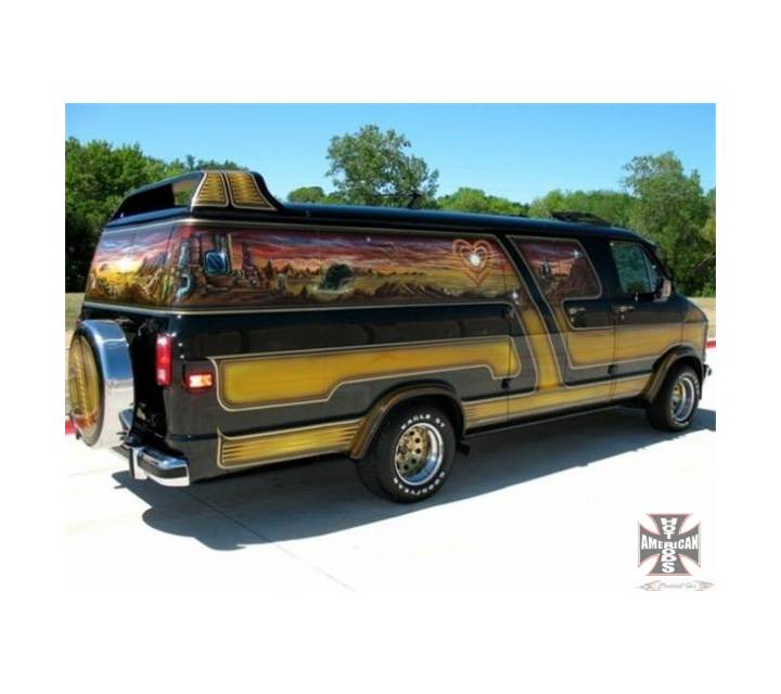 Now that your back from that flashback, let us remind you that you are checking out an awesome 1979 Dodge Maxivan. If the 70's aren't your thing then you might want to move on, but if you remember rockin' tie-die shirts and long hair continue on. Shortly after being bought in 1979, this van was fully customized to what it is today. It is truly a time capsule blasting you back to the 70's. If you haven't noticed yet, the car is covered from top to bottom in custom graphics and airbrushing. The Black paint paired with the Gold oldschool graphics look great broken up by a section of custom artwork wrapping the entire car. The car is powered by a 318 V8 that has no problem getting this thing down the road. What is so custom about the engine you ask? Well, its located underneath the dash! There was no room in the engine compartment so this V8 was custom mounted right inside the cab. Most people think cruisin' around town might be difficult. This is not the case at all! With power brakes, power brakes, and cruise control it couldn't be easier! While the van is all original from 1979 multiple items have been replaced to keep it running strong; new Flo Pro dual exhaust, new K&N filter, new front brakes, new master cylinder, new in line fuel filters, new battery, new voltage regulator, new heavy duty alternator, new holly carburetor, and a new fuel pump! Hate stopping for gas? Well with its 36 gallon fuel tank you will be filling up 1/3 amount that everyone else is. Save money on hotels because this ride is a hotel on wheels! From the bed in the back to the refrigerator and lounge chair this thing has it all! This thing is incredibly comfortable to cruise around in. Being more like a piece of history than a vehicle this 70's survivor wont last long! Don't let this custom cruiser get away at only $24,250.00!
