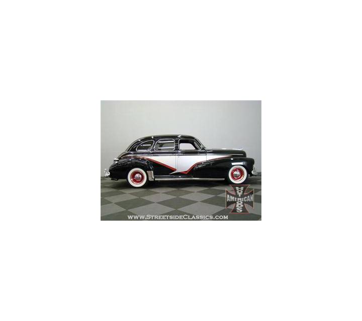 This is a one of a kind custom built, elegant hot rod. A no expense spared, rotisserie build using an original rust free 1946 Chevrolet Fleetmaster. Pitch Black w/Silver & Red Graphics Exterior. Taken down to bare metal, finished with Evercoats Slick Sand bare metal primer and urethane primer by DuPont. Original chrome trim, complete and refinished to perfection. Custom built firewall and transmission tunnel. DuPont single stage pitch black, with silver and red graphics finished in DuPont Premier clear coat. Original modified dash with Autometer gauges. Power windows, Vintage Air super gen II A/C and Heat, with custom billet vents and control hidden in the glove box. AM/FM/XM/CD/iPod/Navigation with Bluetooth stereo in dash an overhead console and rear DVD player with 9.5" screen. 12 volt Waco Electronics refrigerator centered in the rear seat. Separate rear Vintage Air A/C and Heat controls in back seat. Handcrafted leather seats, headliner and trunk panels. Polished stainless steel tilt steering column. Hand cut smoked glass throughout this Fleetmaster. Fatman Fabrication Mustang II front end, power rack and pinion, 11" power disc brakes, polish stainless steel control arms. Custom built engine mounts hold a Chevy LS1 5.7L engine producing 345hp, 4L60 automatic transmission, backed up by a 10 bolt rear end with 3.08 Richmond rear gear. 15 gallon fuel tank with electric high pressure fuel pump.
