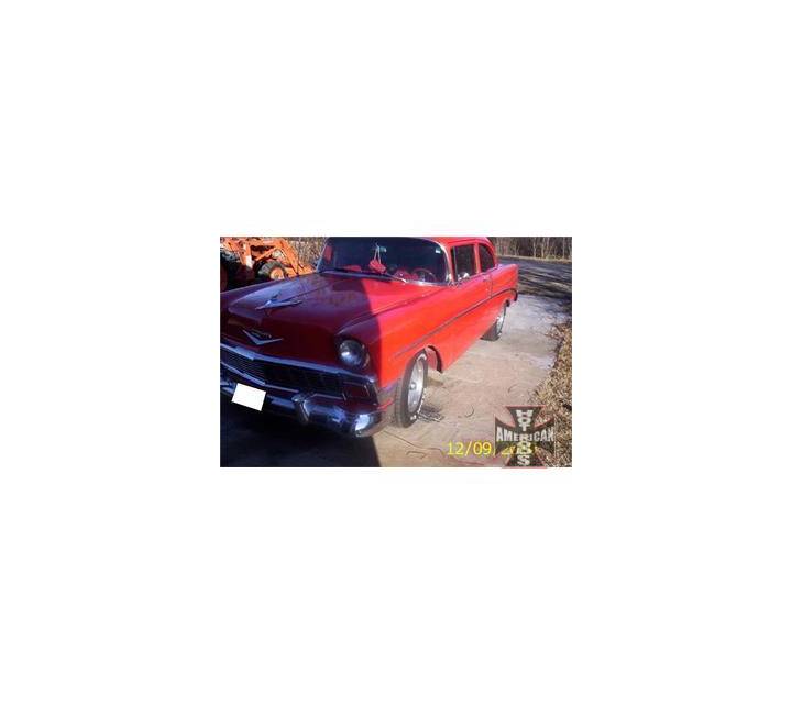 1956 CHEVY DelRay. Rare Vehicle Great Car 2 door sedan, red, no rust. Customized and restored. Front end chrome-replaced, rebuilt 350 engine, 700 R4 all drive tranny, hi-speed rear end, new gas tank, 2 drop front end disc brakes, new floor pans, noise reduction insulation, bench seat, tension bars on front and back, new tires only 1 year old, stainless steel steering column, new speedometer, made to look original, dual exhaust, ceramic headers, new shocks, replaced lower half on trunk lid, has a carjack, bumpers are original.